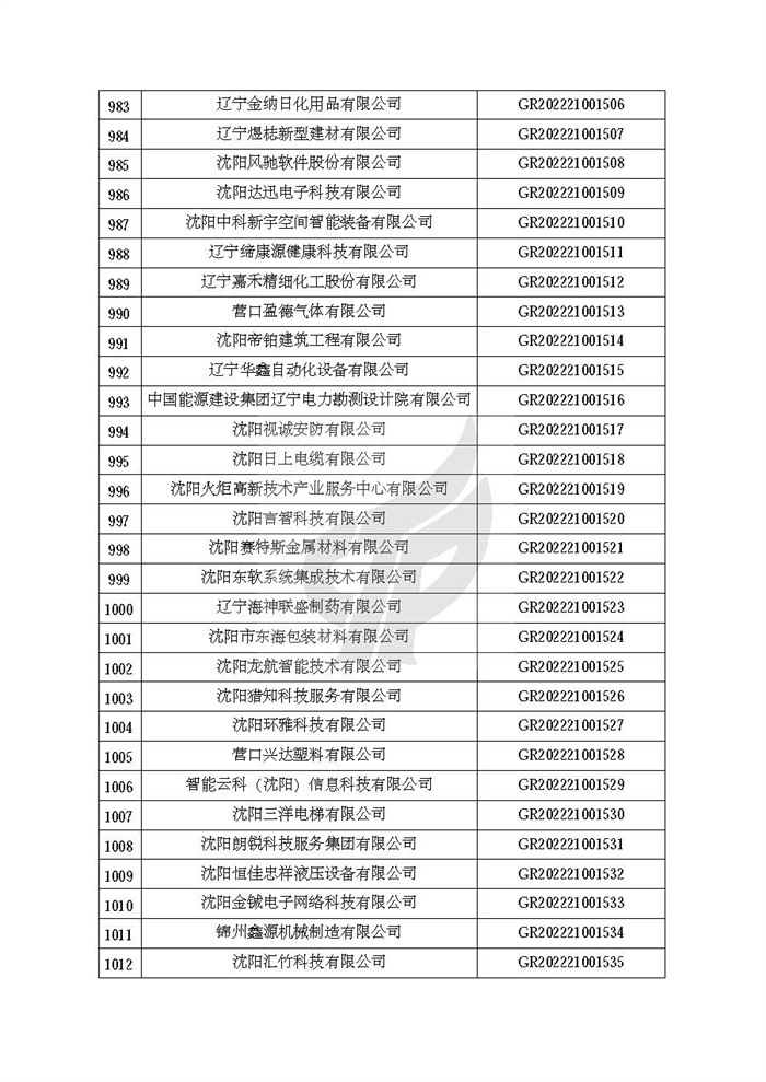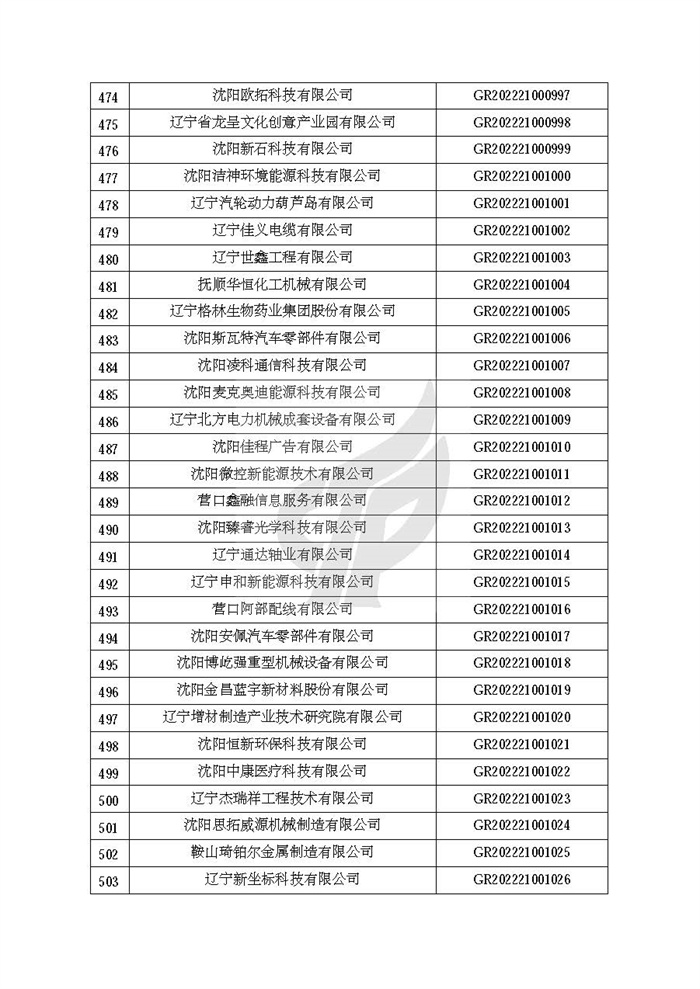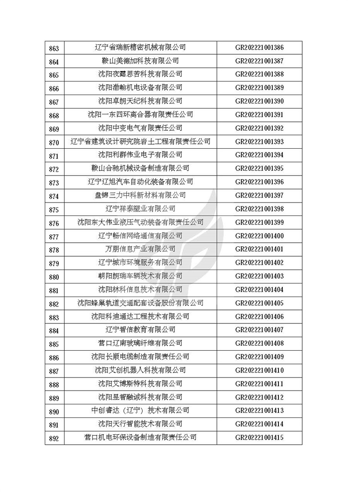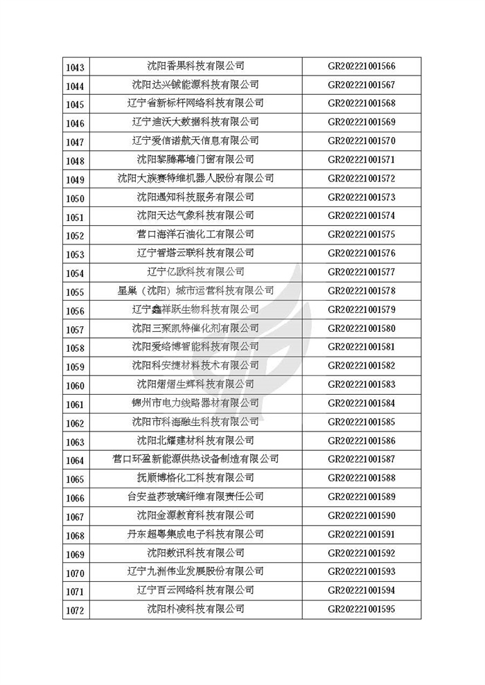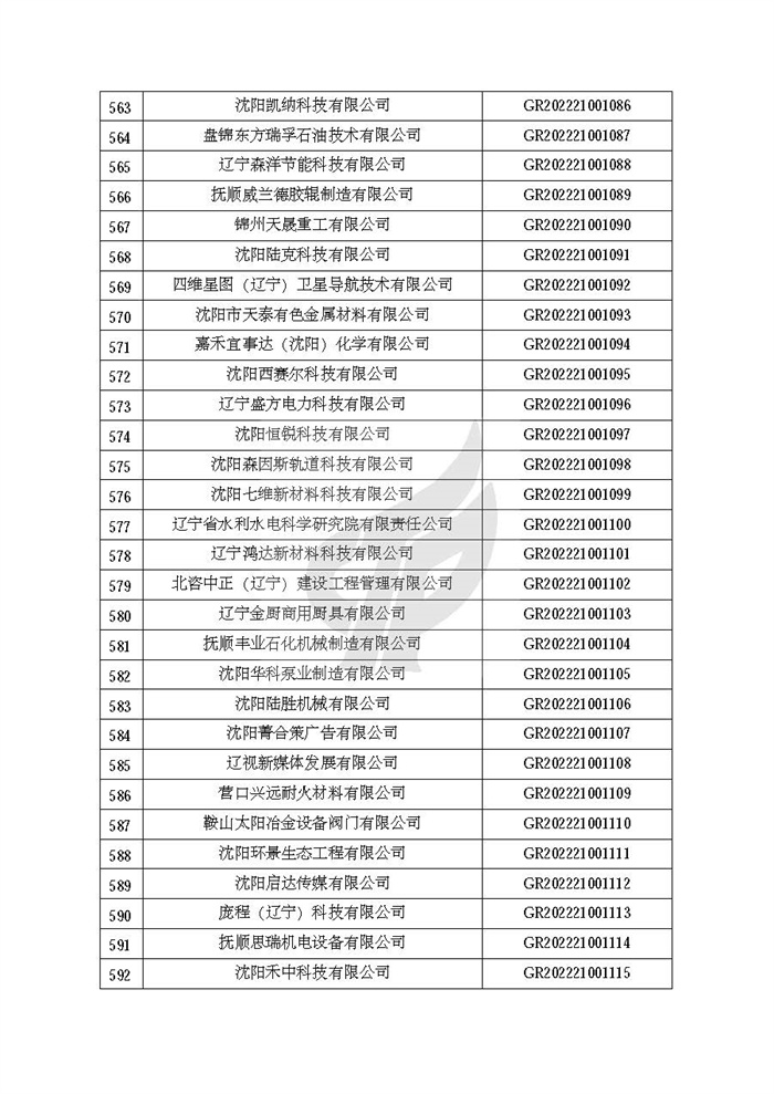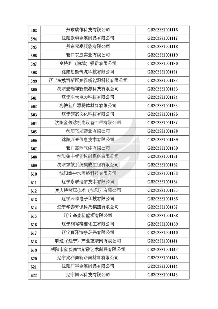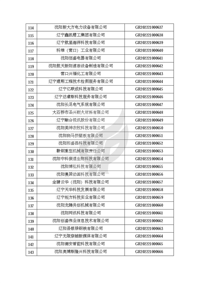 根据《高新技术企业认定管理办法》(国科发火〔2016〕32号)和《高新技术企业认定管理工作指引》(国科发火〔2016〕195号)有关规定,现对辽宁省认定机构2022年认定的第二批1142家高新技术企业备案名单(详见附件)予以公告。