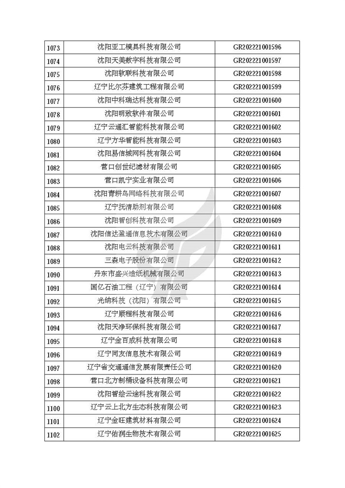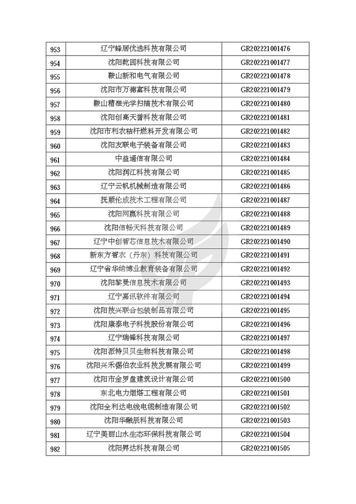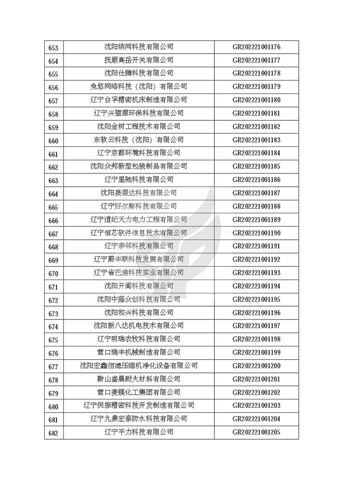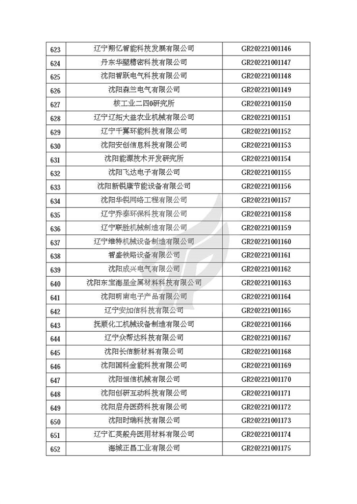 根据《高新技术企业认定管理办法》(国科发火〔2016〕32号)和《高新技术企业认定管理工作指引》(国科发火〔2016〕195号)有关规定,现对辽宁省认定机构2022年认定的第二批1142家高新技术企业备案名单(详见附件)予以公告。