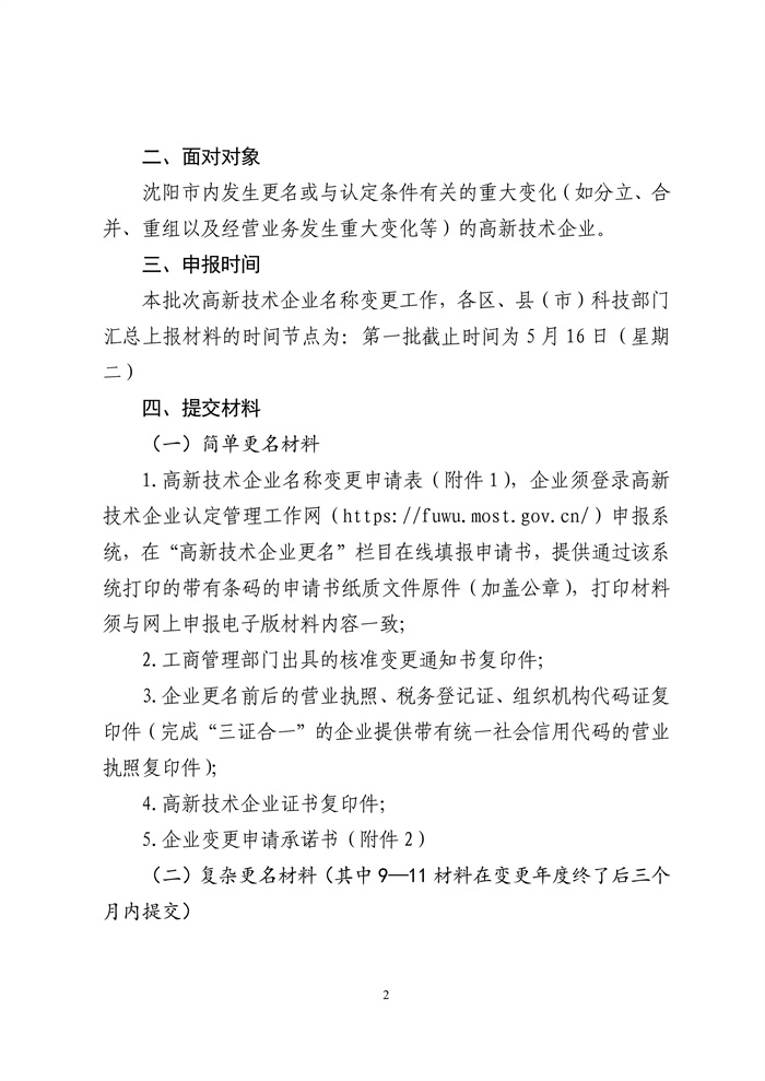 关于组织开展2023年沈阳高新技术企业名称变更工作的通知